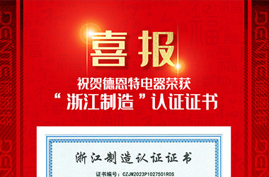 正值德恩特電器燃?xì)庑缕氛谏鲜兄H,又獲重磅利好,德恩特電器在浙江省眾多優(yōu)秀企業(yè)的競爭中脫穎而出,榮獲“浙江制造”認(rèn)證證書,被授權(quán)使用“品”字標(biāo)志,正式躋身于“品”字標(biāo)浙江制造高端品牌大家庭。