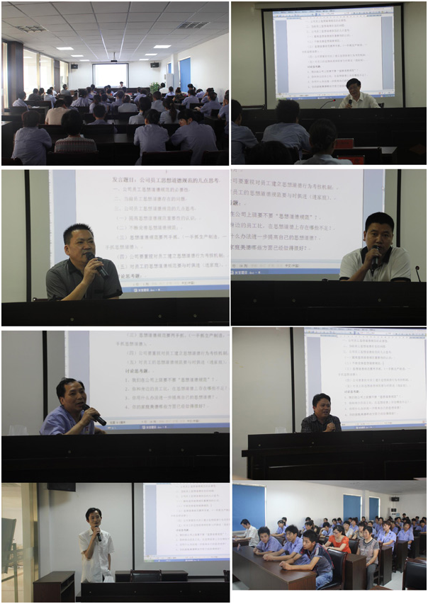 為進一步提升員工思想道德素養,挖掘員工內在潛力,培養員工胸懷遠大的目標與崇高的理想,幫助員工樹立正確的人生觀價值觀,使員工愛崗敬業,誠實可信,積極進取,勇于創新,實現和創造員工和企業共同成長,公司從七月四日起在公司多媒體室,將對全廠員工尤其是一線的員工,開展為期四周的每周一個下午的時間脫產集中培訓。